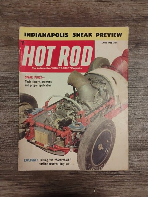 June 1955 Hot Rod Magazine, Indianapolis Sneak Preview, Advertising Grant Piston Rings on the back. Please inspect all photos carefully for condition, all items are sold as is.