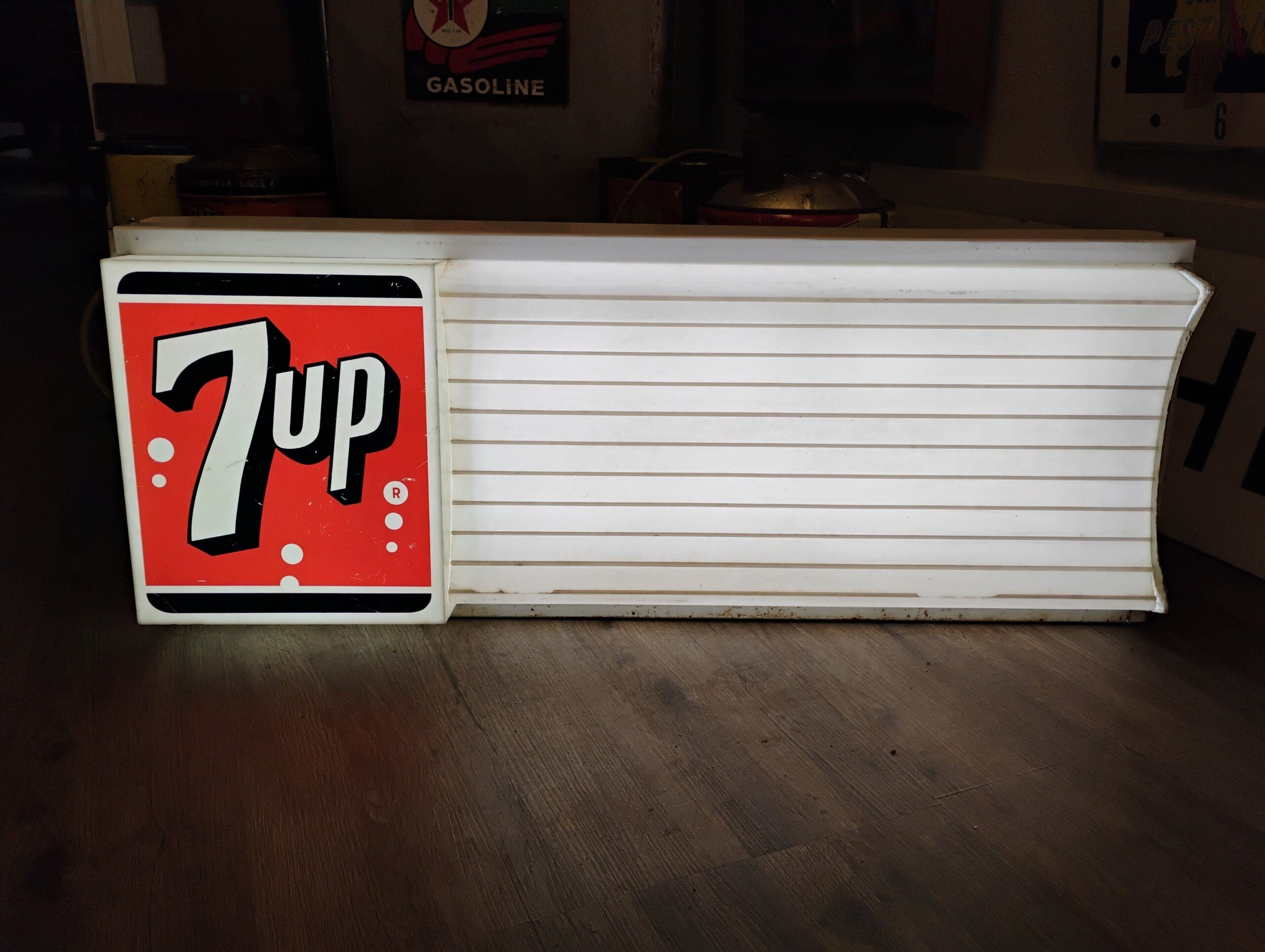 7-Up Menu Board, Light-Up, Brand New Power Source and LEDs, Approximately 13 1/2in. x 3ft. x 7in. Please inspect all photos carefully for condition, all items are sold as is.