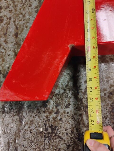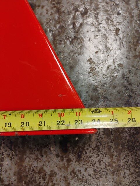 “A” Sign, Red, Metal, Approximately 21 1/2in. x 24in. x 4in. Please inspect the photos carefully for condition, all items are sold as is.