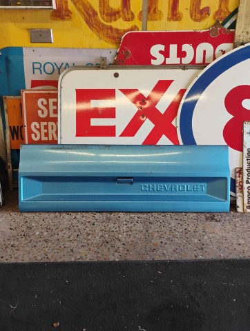 Chevrolet Tailgate, Blue, Approximately 67in. x 22in. Please inspect all photos carefully for condition, all items are sold as is.