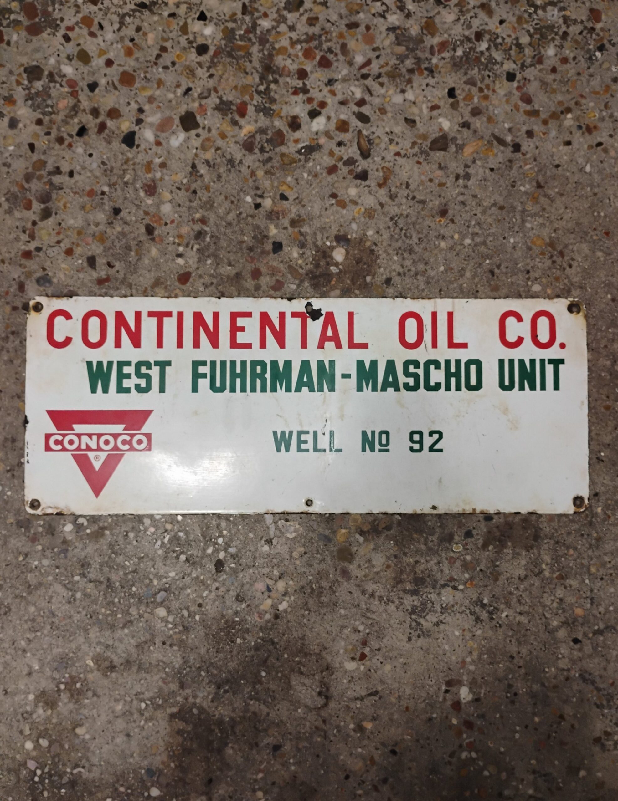 Continental Oil Co. Lease Sign, Conoco, Approximately 1oin. X 26in. Please inspect all photos carefully for condition, all items are sold as is.