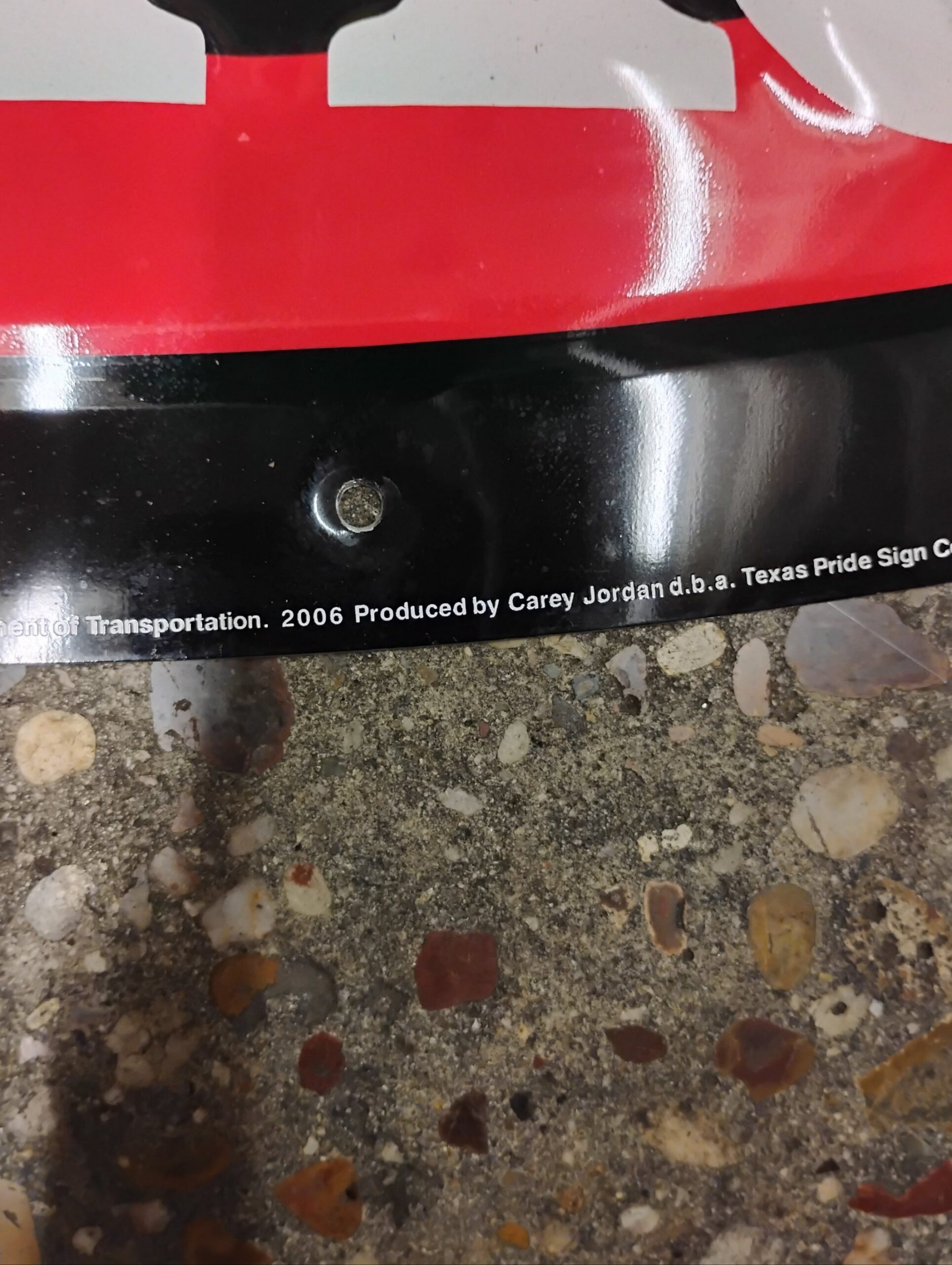 Don’t Mess with Texas Sign, Circa 2006, Approximately 4ft. X 2ft. 3in. Please inspect all photos carefully for condition, all items are sold as is.
