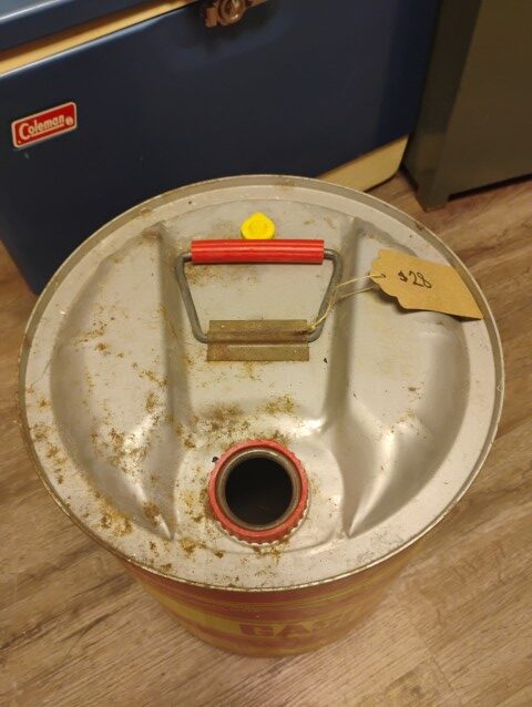 Gasoline Gas Can, Empty, 5 Gallons, Red and Yellow. Please inspect all photos carefully for condition, all items are sold as is.