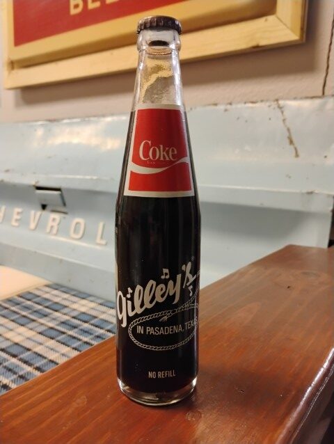 Gilley’s Coca-cola Bottle, Circa 1983, Full, Glass.