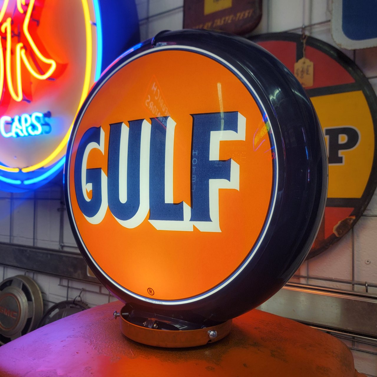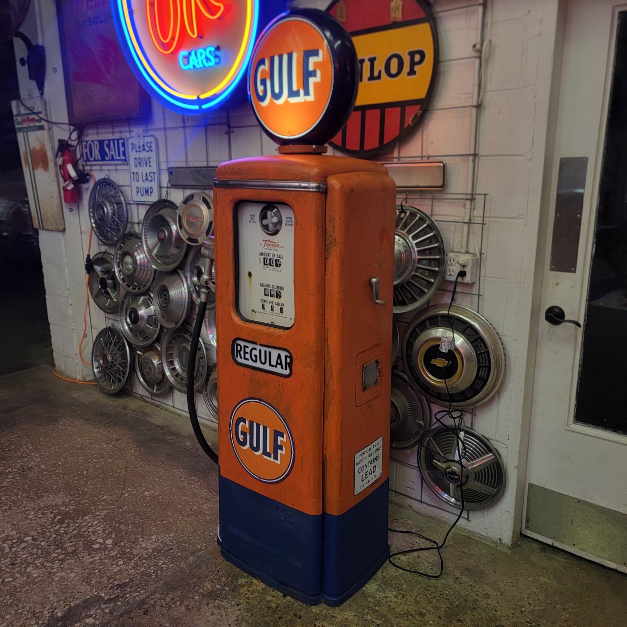 Gulf Gas Pump, Tokheim, Orange and Blue.