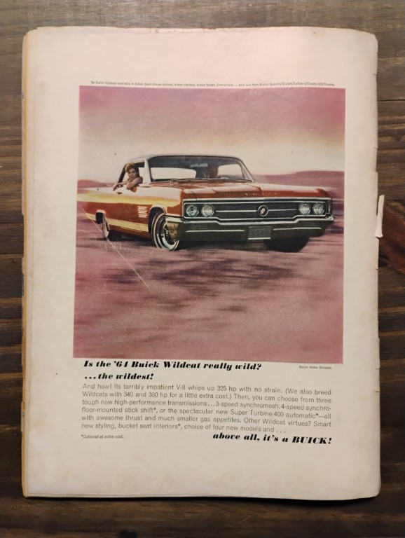 July 1964 Hot Rod Magazine, Plymouth Fastback Barracuda, Advertising a 64′ Buick Wildcat ad on the back.