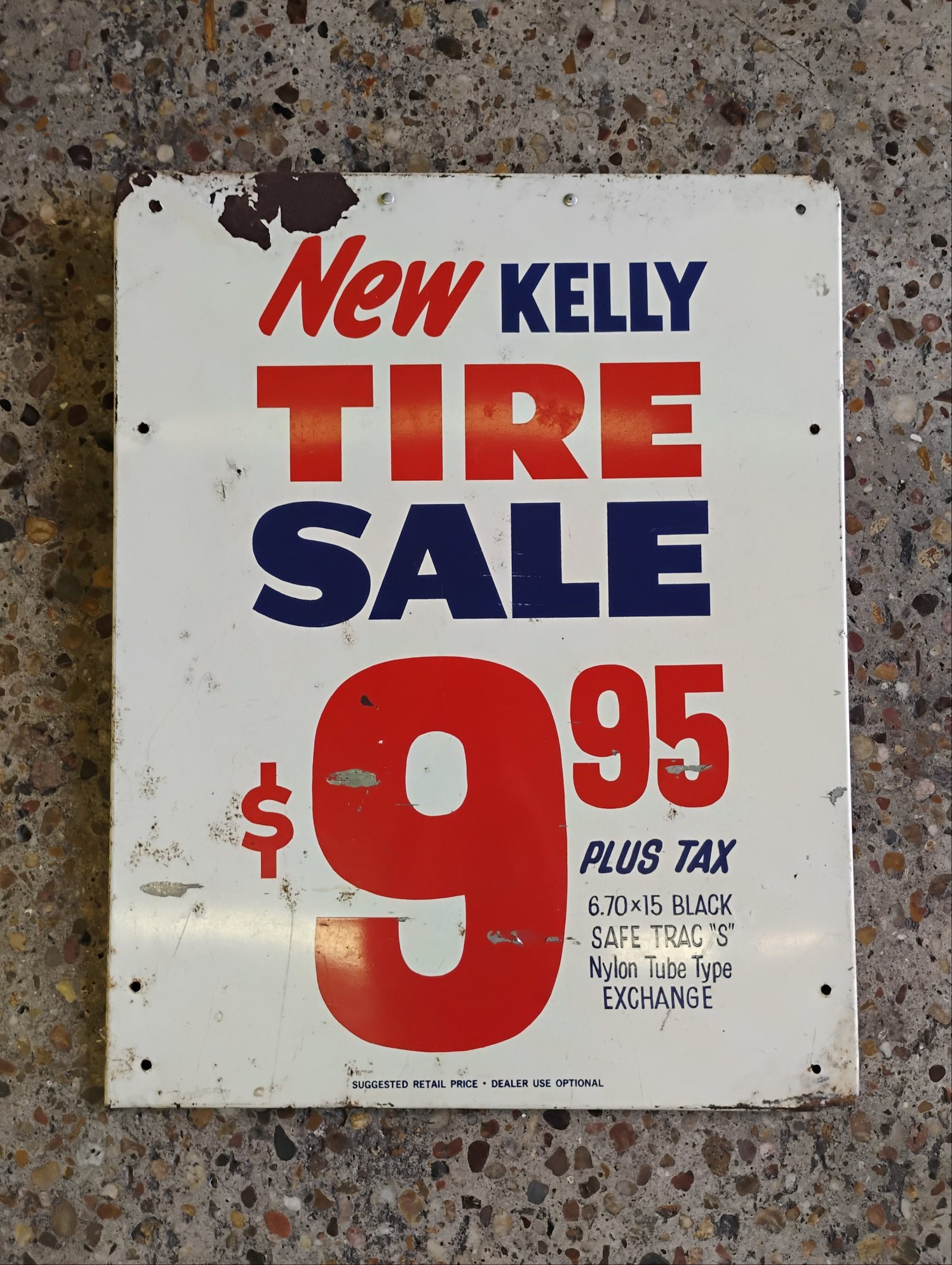 Kelly Tires Sign, White and Red, Approximately 22in. x 28in.