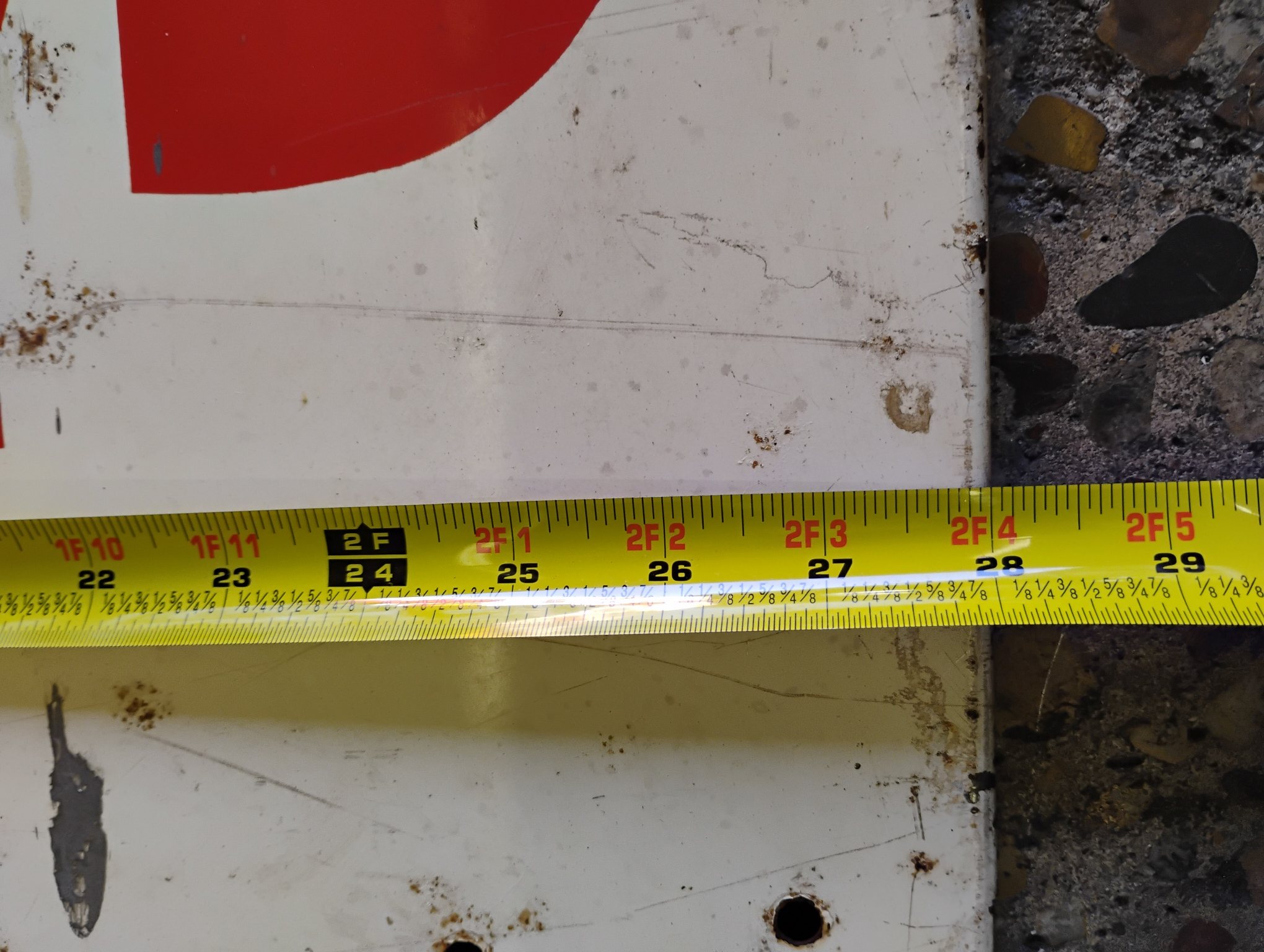 Kelly Tires Sign, White and Red, Approximately 22in. x 28in. Please inspect all photos carefully for condition, all items are sold as is.