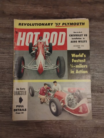 November 1956 Hot Rod Magazine, Revolutionary ’57 Plymouth, Advertising Grant Piston Rings on the back. Please inspect all photos carefully for condition, all items are sold as is.