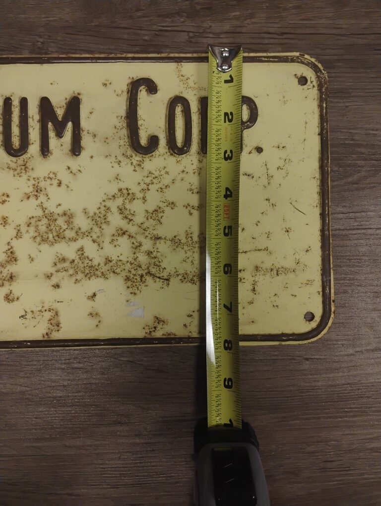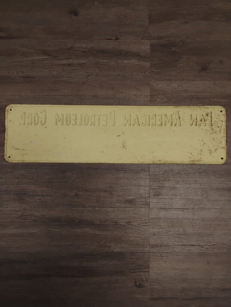 Pan American Petroleum Sign, Yellow and Brown, Approximately 30in. x 8in. Please inspect all photos carefully for condition, all items are sold as is.