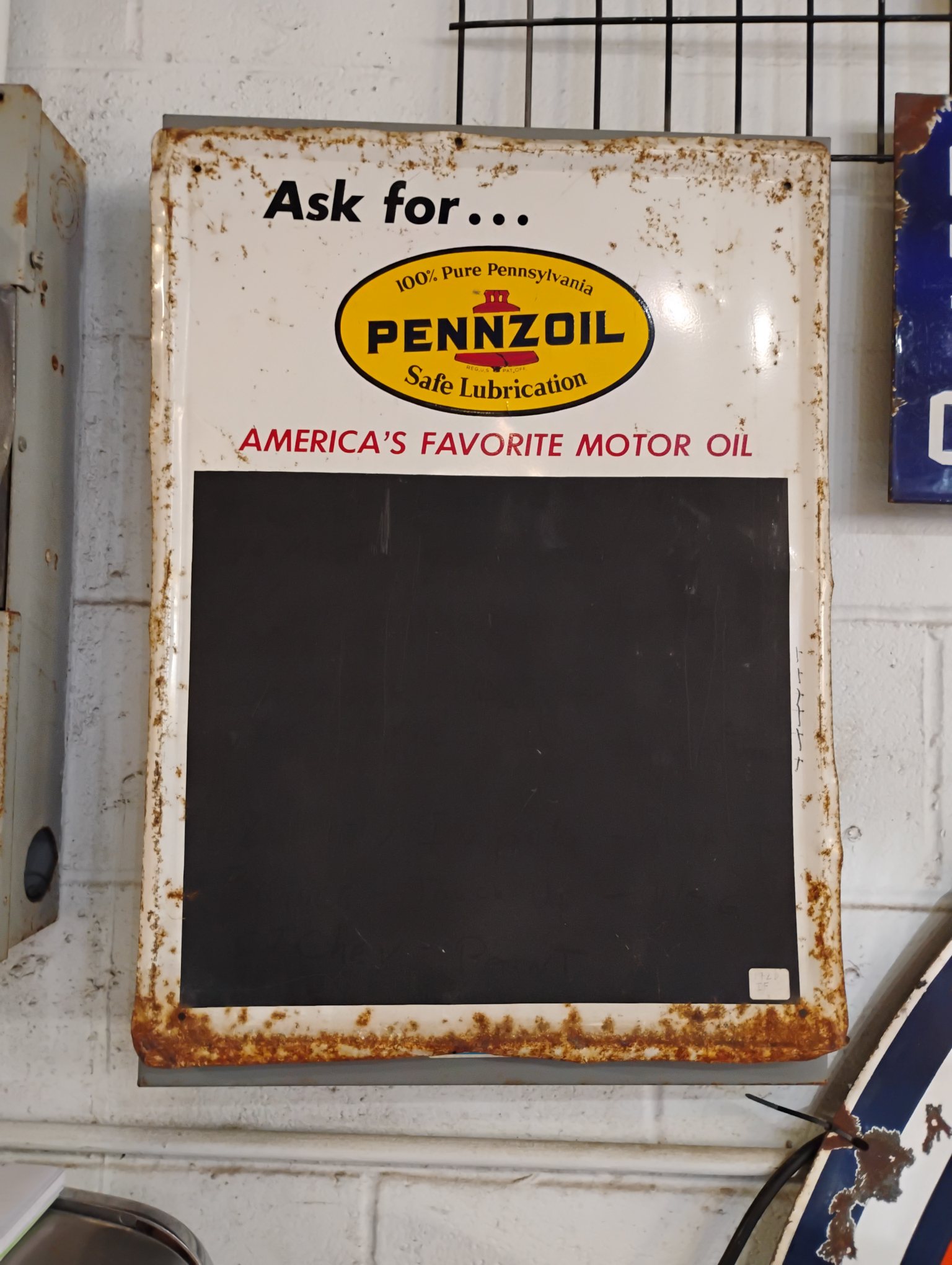 Pennzoil Chalk Board Sign, White, Approximately 24in. x 18in. Please inspect all photos carefully for condition, all items are sold as is.