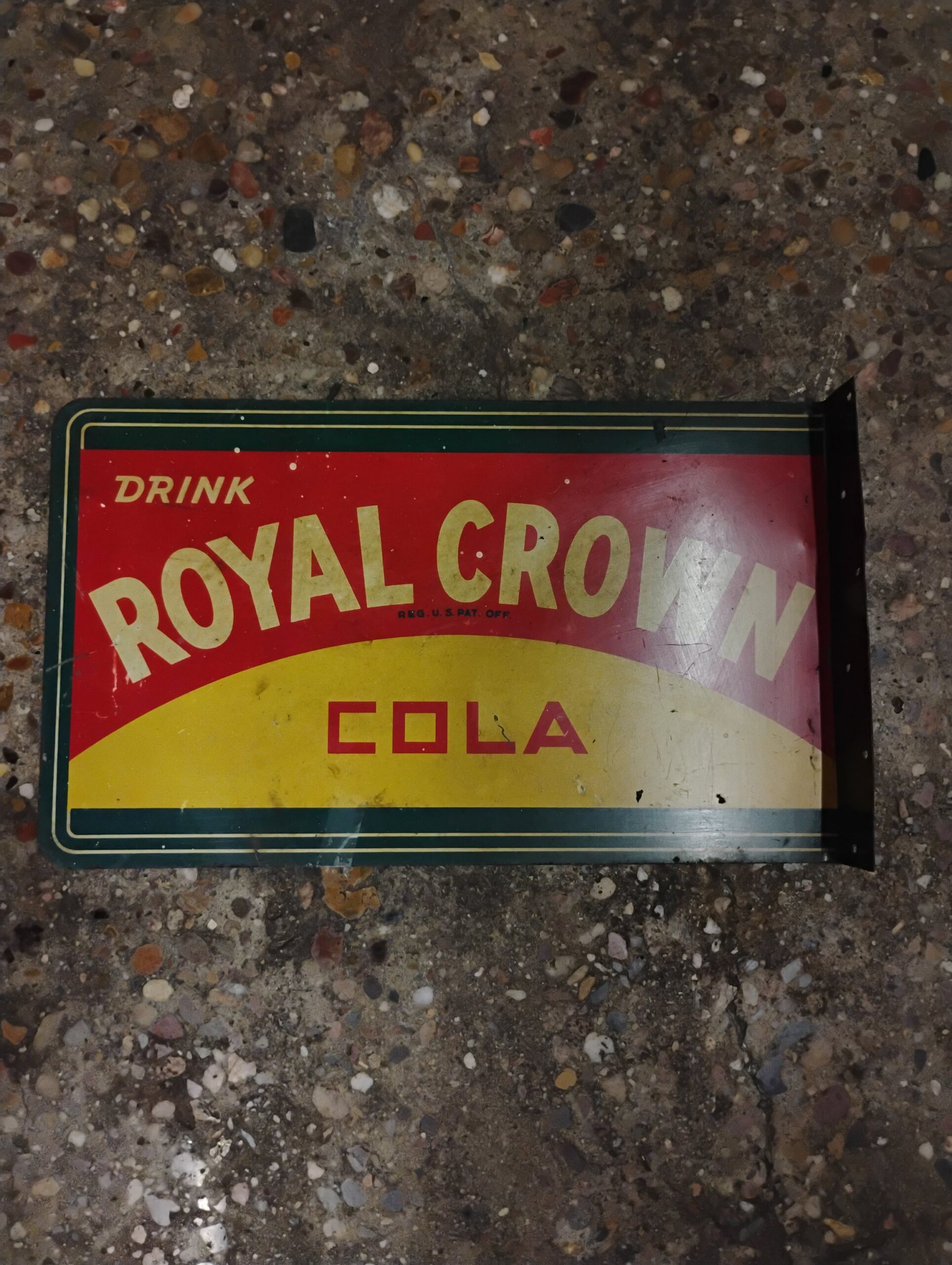 Royal Crown Flange Sign, Approximately 1o 1/2in. X 18in., Red, Green, and Yellow.