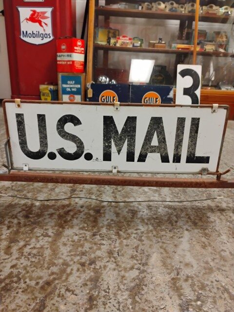 Champion Spark Plug Sign, Double-Sided, White and Black, Approximately 44 1/2in. x 11 1/2in. Please inspect the photos carefully for condition, all items are sold as is.