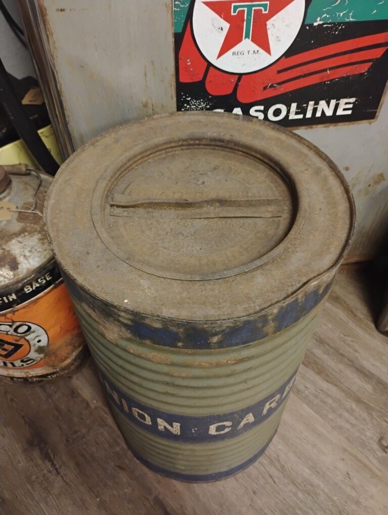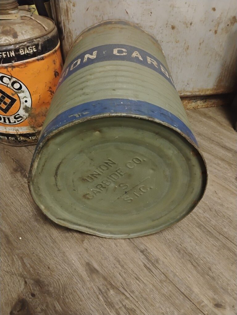 Union Carbide Can, Blue, Approximately 19 1/2in x 13in. Please inspect all photos carefully for condition, all items are sold as is.