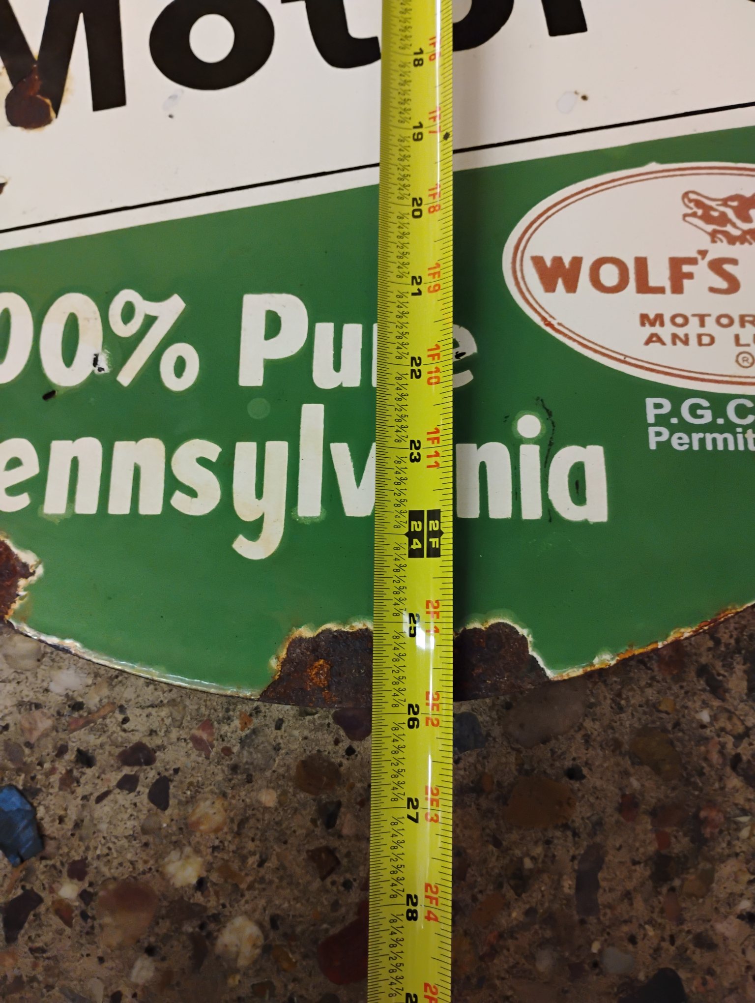 Wolf’s Head Flange, Red and Green, Approximately 26in. x 25in. Please inspect all photos carefully for condition, all items are sold as is.